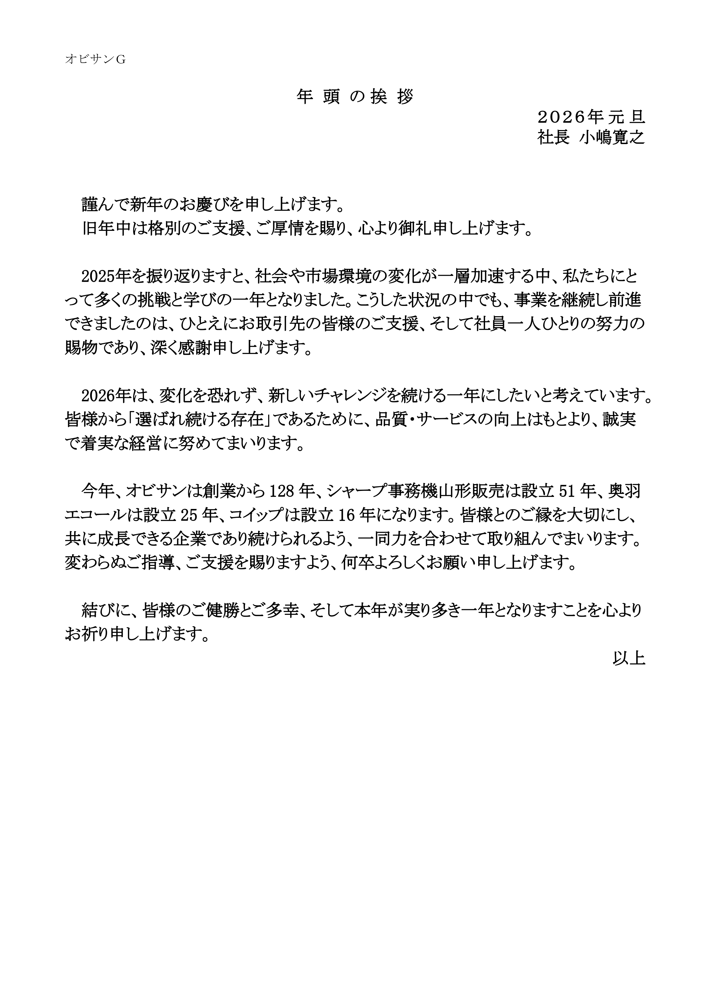 年頭の挨拶2026